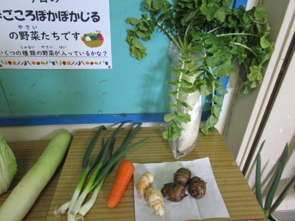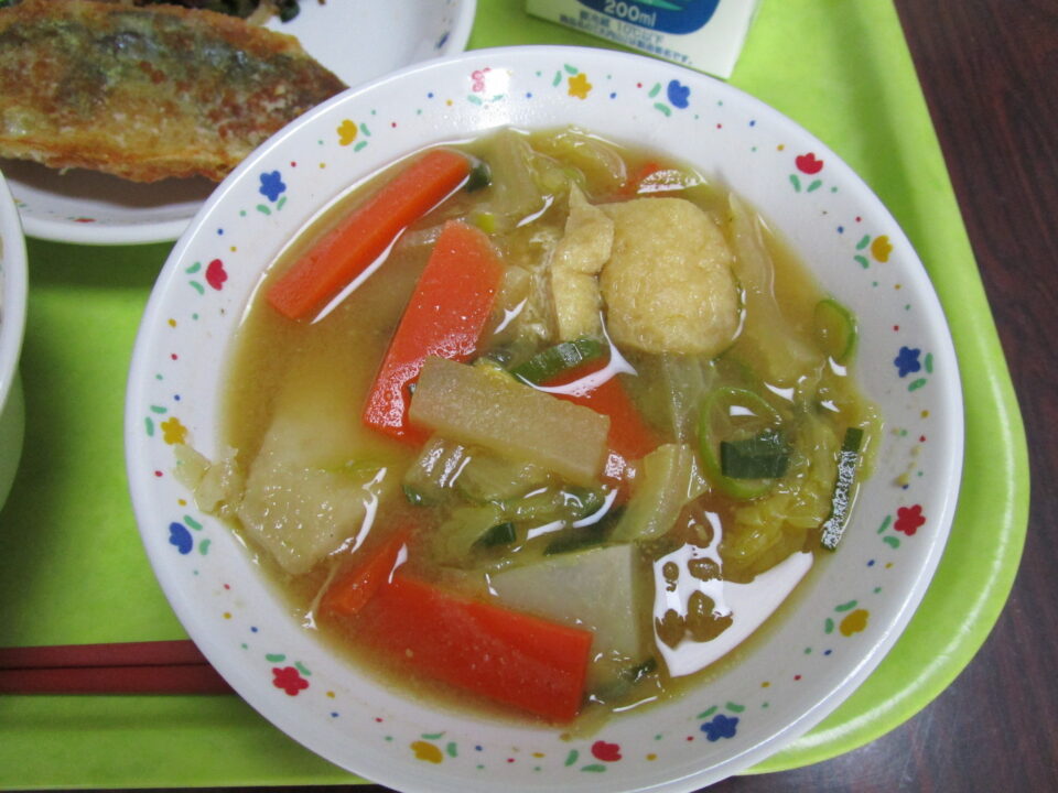 学校給食週間中の今日は、まごころぽかぽか汁でした。