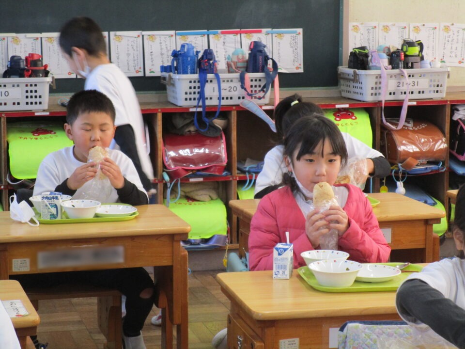 きなこがまぶしてありますが、給食調理員さんが、全員、一人ひとりが食べやすいように、袋詰めをしてくださいました。