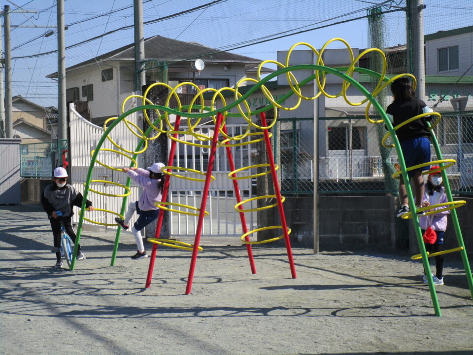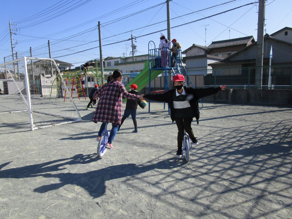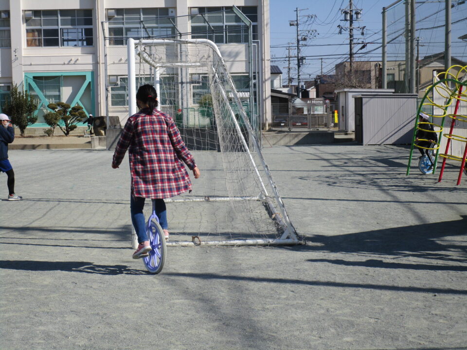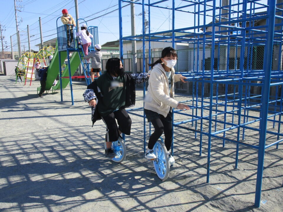 今日もドッジボール、一輪車、なわとび、ブランコなどの遊具等でたくさんの子が、遊びを楽しんでいました。