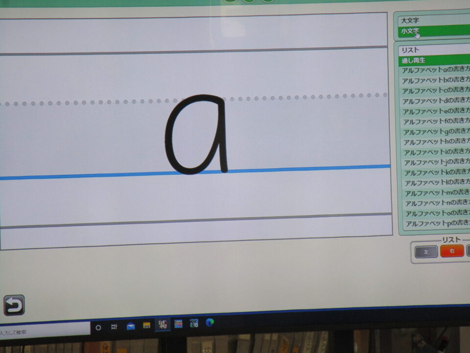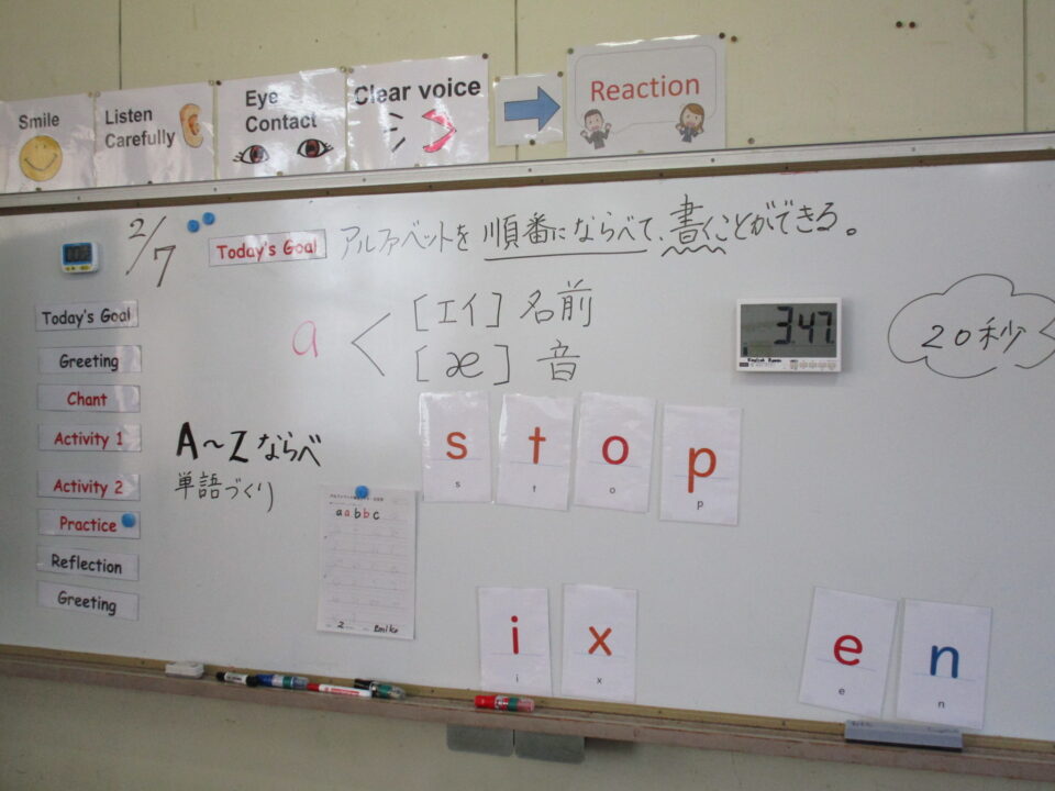 教室では、4年生の子たちがアルファベットの練習をしていました。