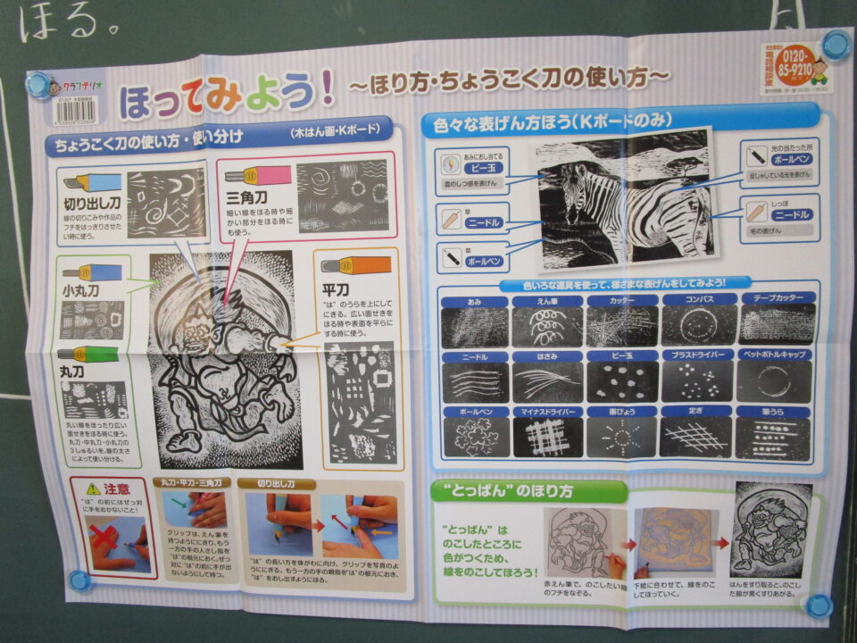 図工で彫刻刀の使い方を先生から教えてもらっていました。