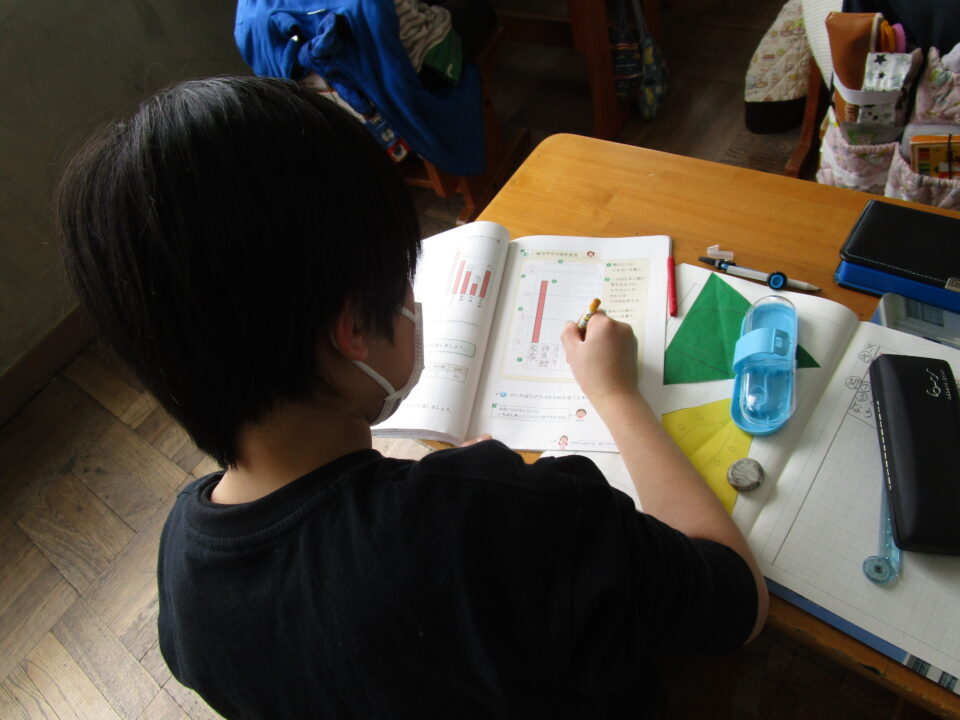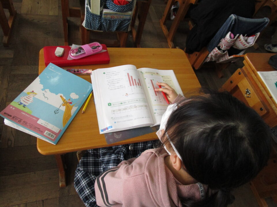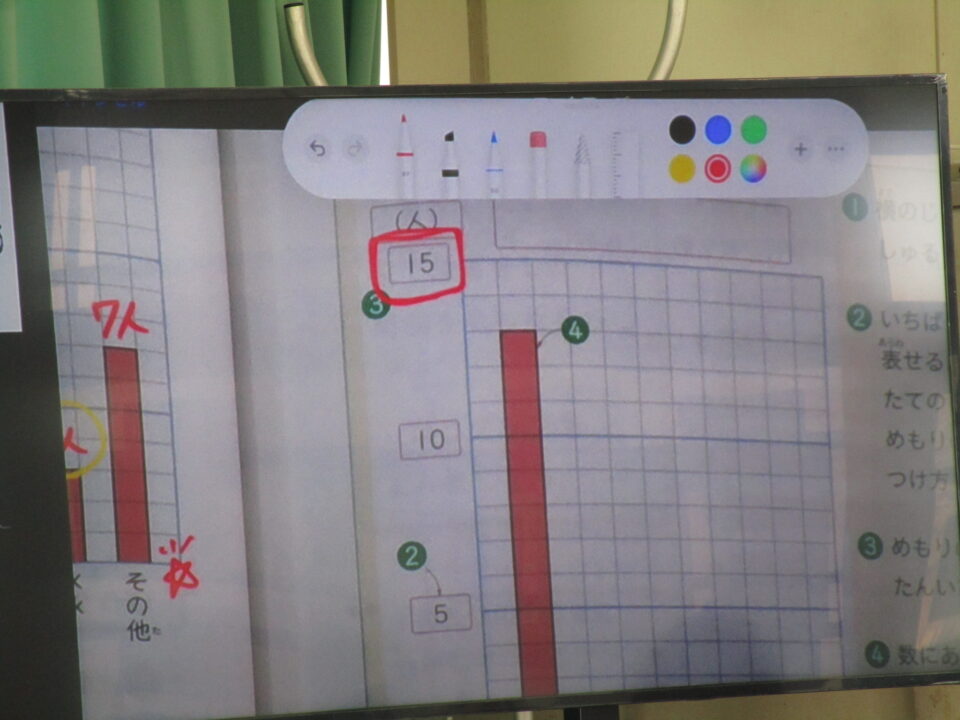 隣のクラスでは、棒グラフをかいたり、読んだりしていました。