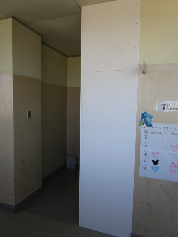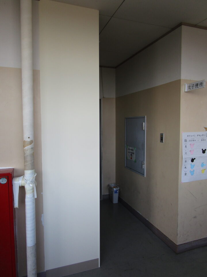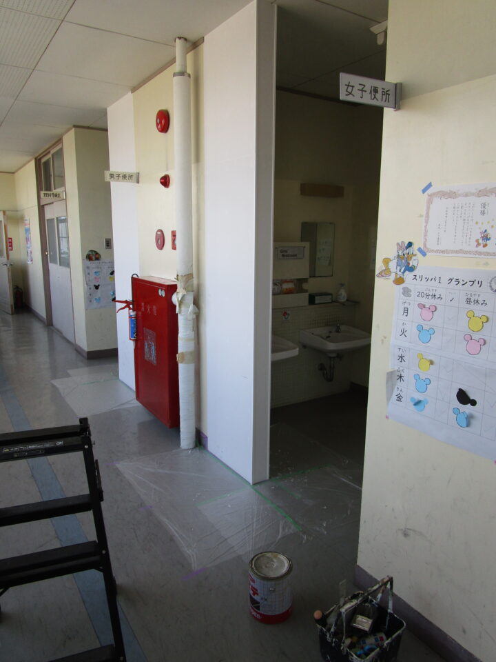 ホーム > 日々の活動の様子 / 2021年度 トイレ 目隠(めかく)し壁工事(かべこうじ)仕上(しあ)げ 先週(せんしゅう)は、壁(かべ)の設置(せっち)までしていただきました。 昨日(さくじつ)、夕方遅(ゆうがたおそ)くまで塗装(とそう)をしていただき、完成(かんせい)しました。 まず、ねじの部分塗(ぶぶんぬ)りをして・・・ その後(ご)、二度塗(にどぬ)りをしていただきました。 今年度(こんねんど)は、予算(よさん)の都合上(つごうじょう)、4年生(ねんせい)~6年生(ねんせい)の高学年(こうがくねん)トイレのみでした。 シェアする Twitter でシェア はてなブックマークに保存 LINE でシェア Facebook でシェア Pocket に保存 Feedly で購読 関連投稿 2024年度 / 日々の活動の様子 人権(じんけん)について考(かんが)える会(かい)を行(おこな)いました 日々の活動の様子 / 2020年度 学習(がくしゅう)の様子(ようす)1年生(ねんせい)、2年生(ねんせい)、6年生(ねんせい) 2024年度 / 日々の活動の様子 6年生(ねんせい)へしおりのプレゼント 2024年度 / 日々の活動の様子 着任式(ちゃくにんしき)・始業式(しぎょうしき) 日々の活動の様子 / 2023年度 平和学習(へいわがくしゅう) ~3年生(ねんせい)~ 日々の活動の様子 / 2021年度 わくわくフェスティバル1.2年生(ねんせい)1組編(くみへん) 前の投稿 先生(せんせい)たちでワックスがけ🎵 次の投稿 門前(もんまえ)の看板(かんばん)お化粧直(けしょうなお)し