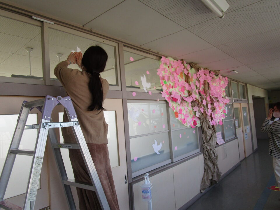 つむぎやさんが、本の森ルームの飾りつけをしてくださっています。
