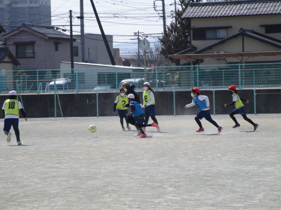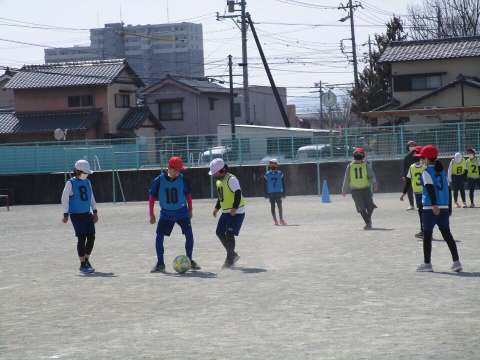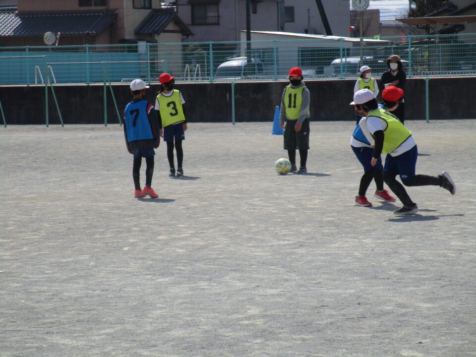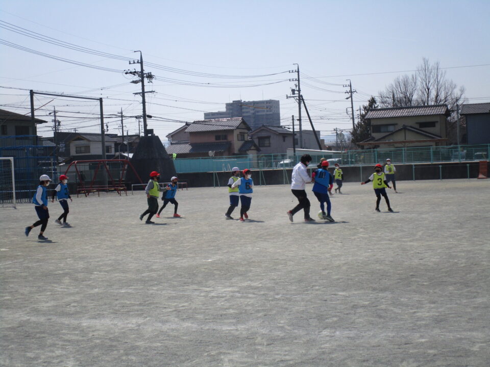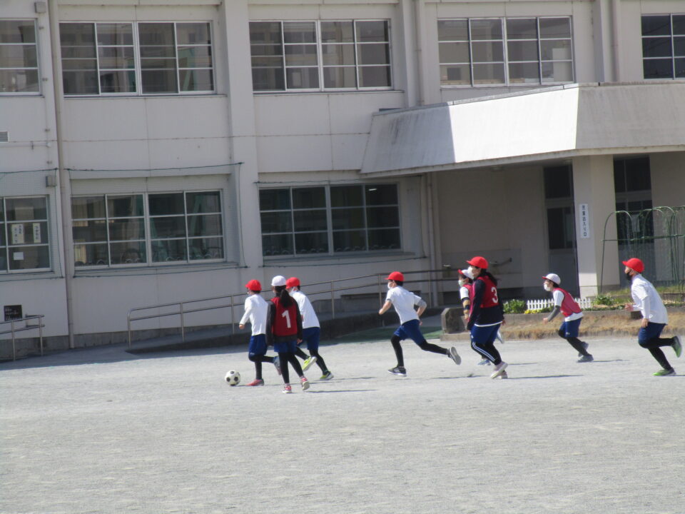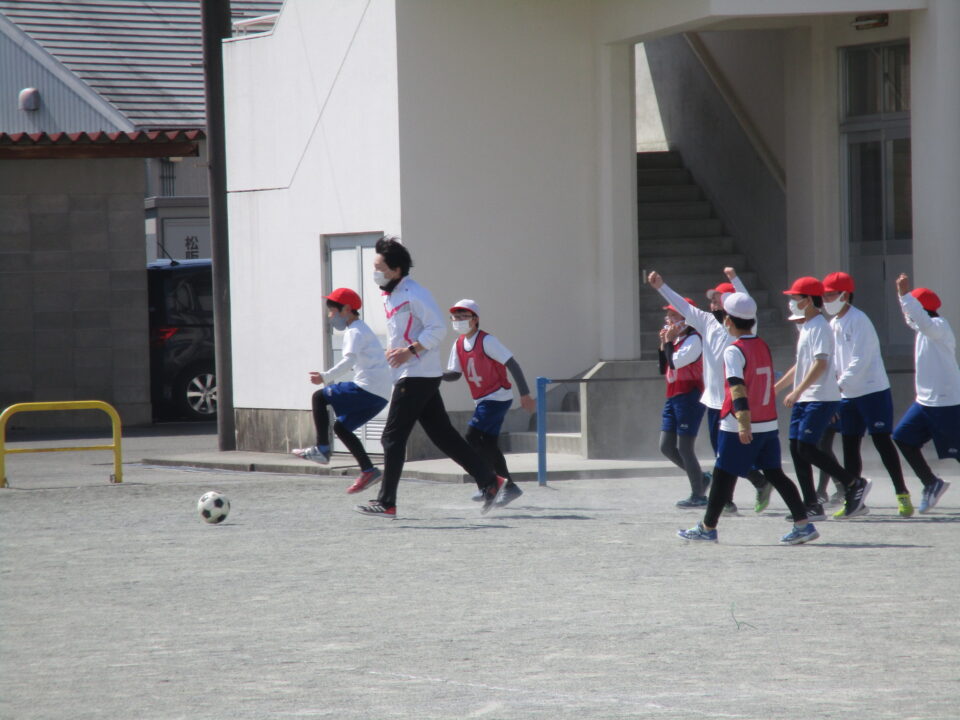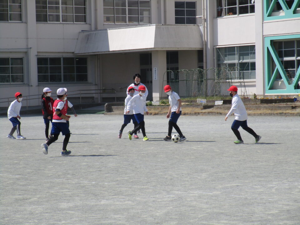 運動場では、サッカーをしていました。今日は、日中は暑いくらいでしたね。