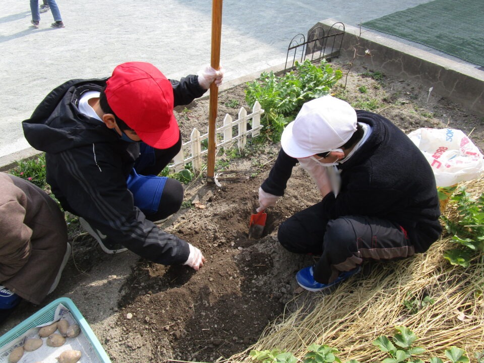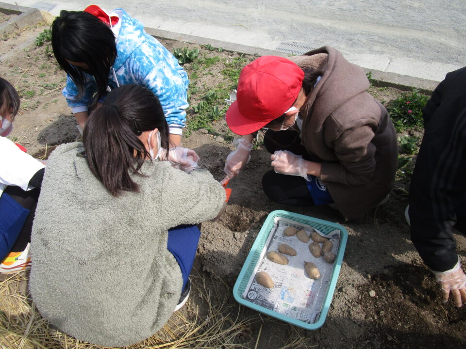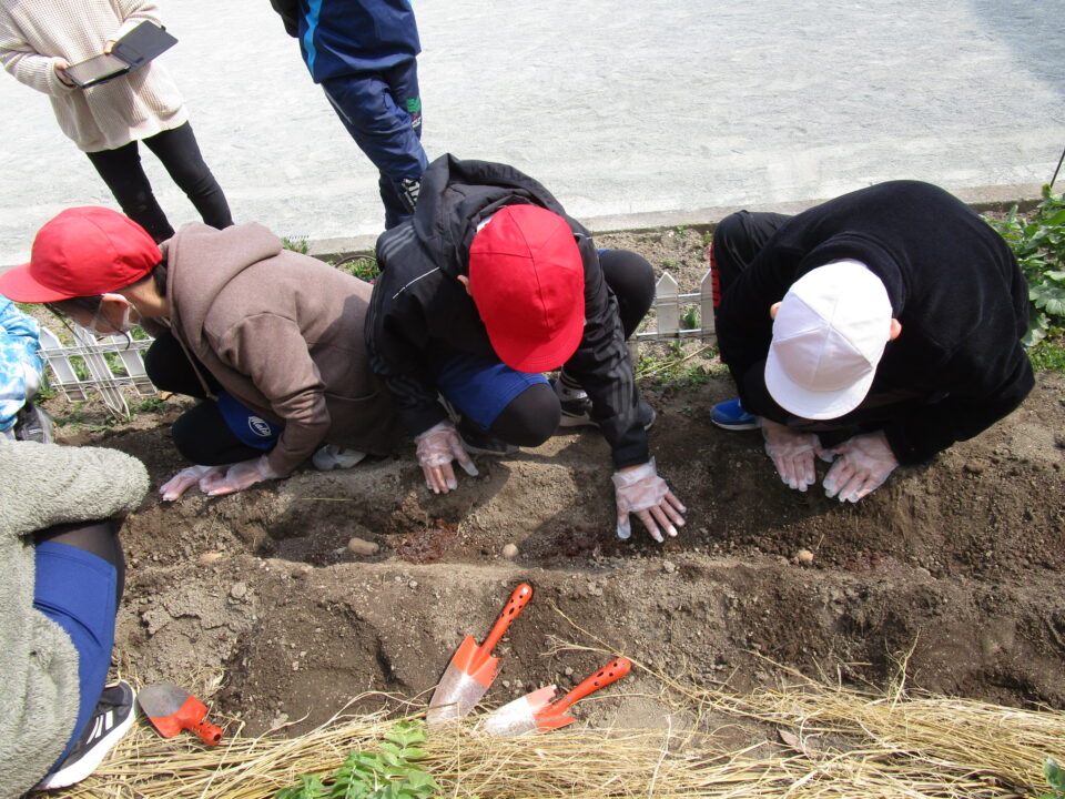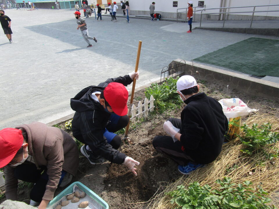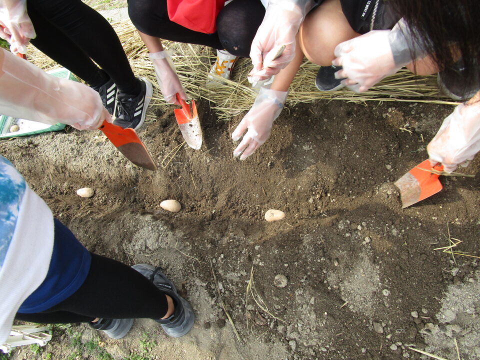3月8日に家庭科室で切って作った種芋を来年度用に植えました。
