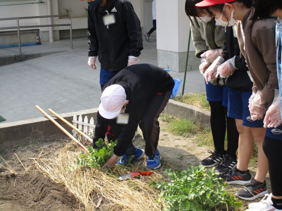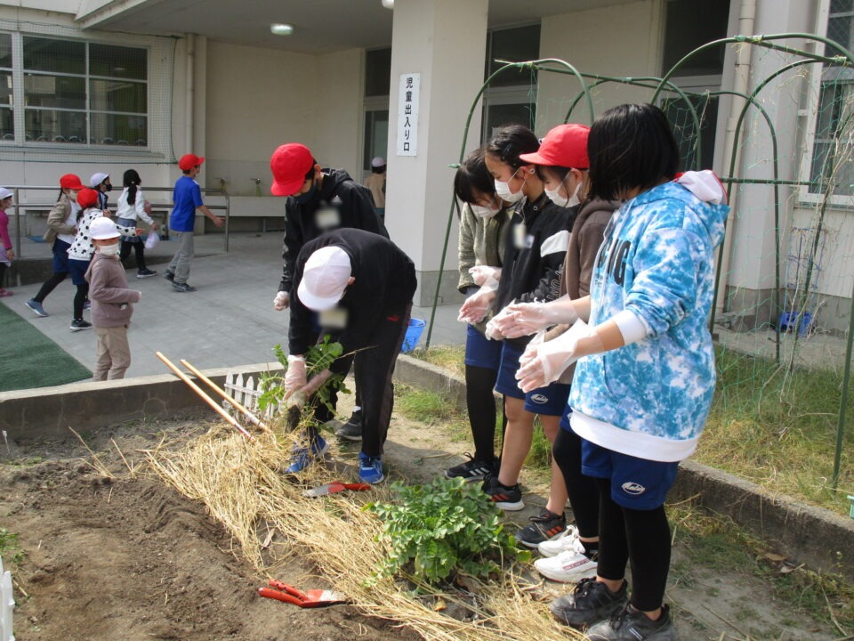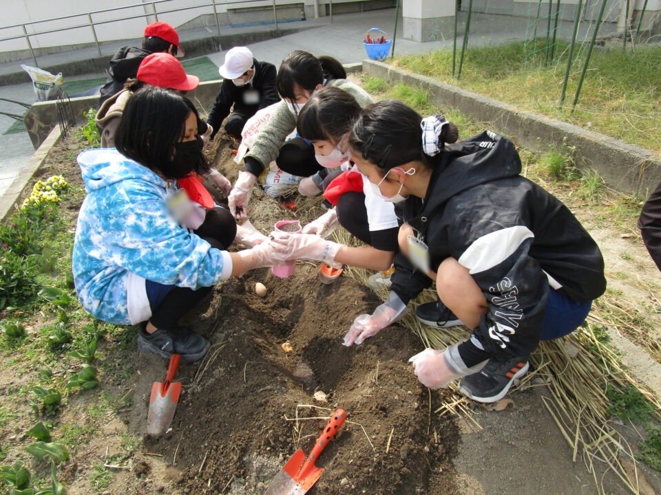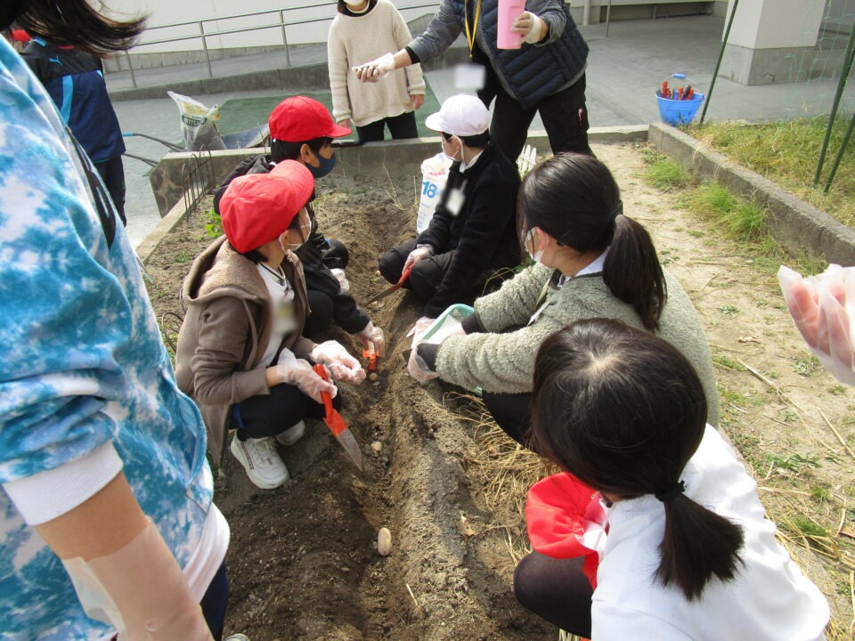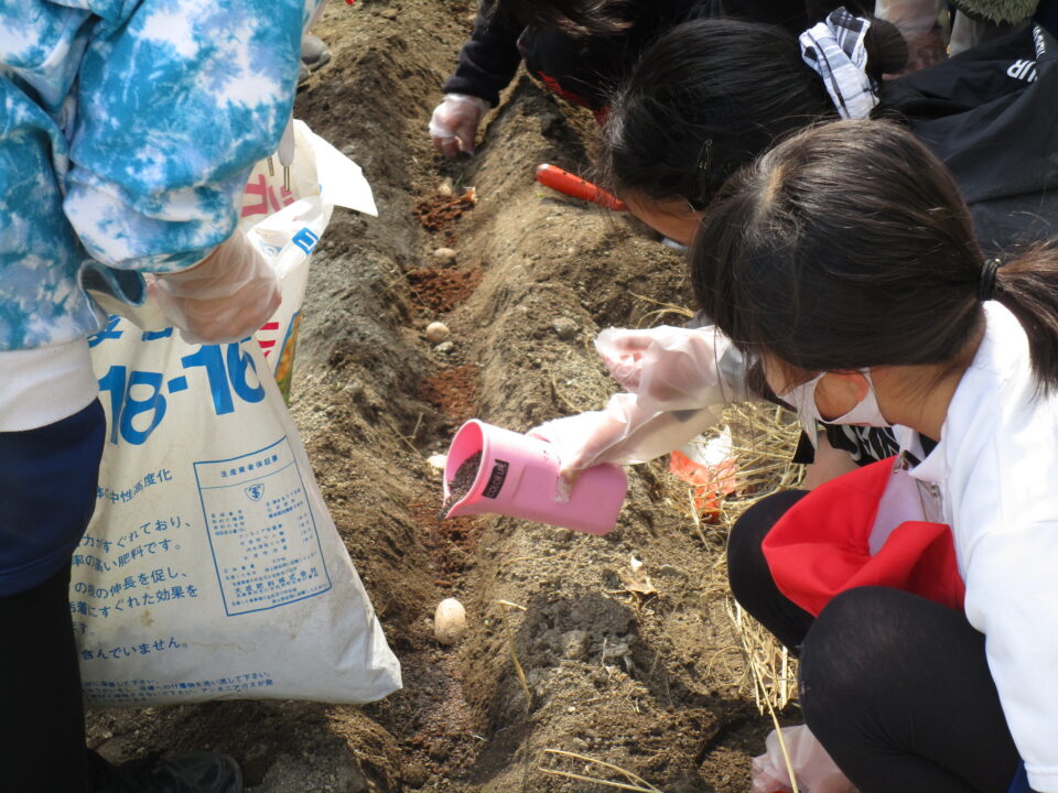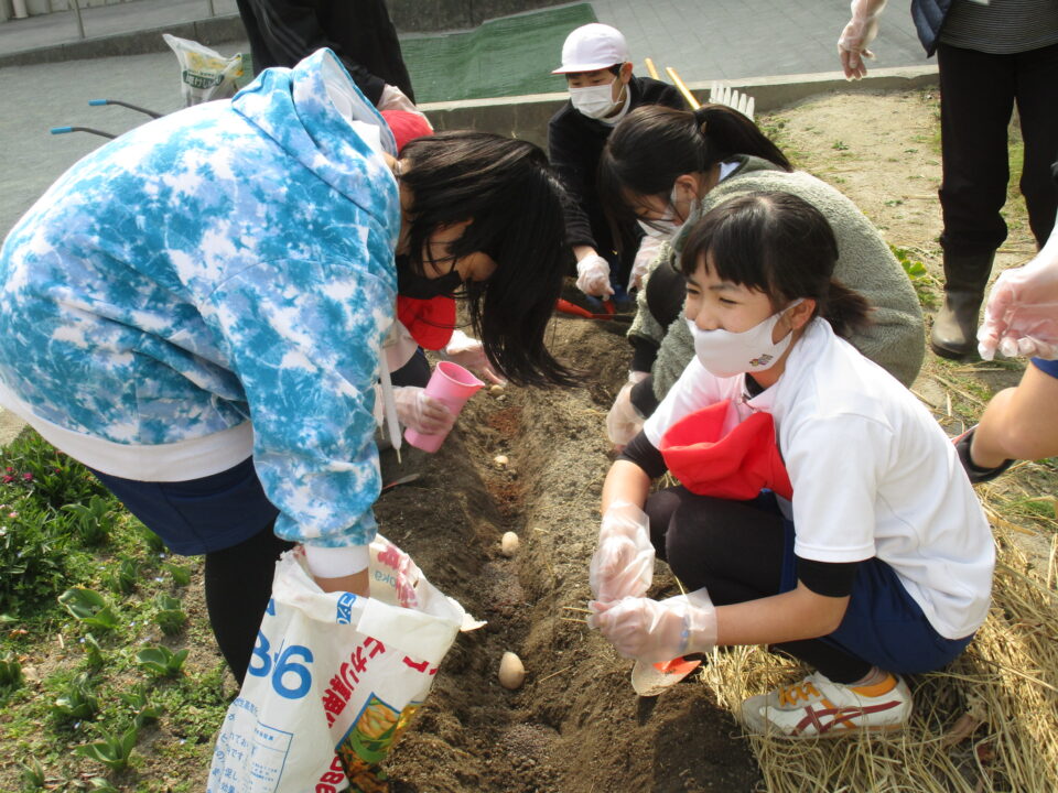 3月8日に家庭科室で切って作った種芋を来年度用に植えました。