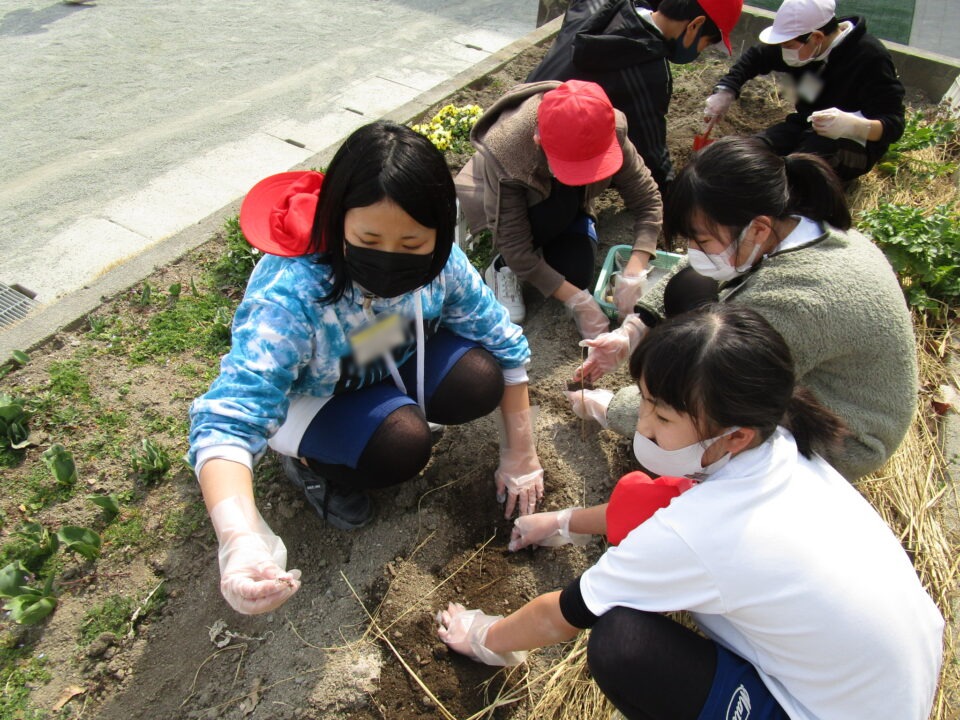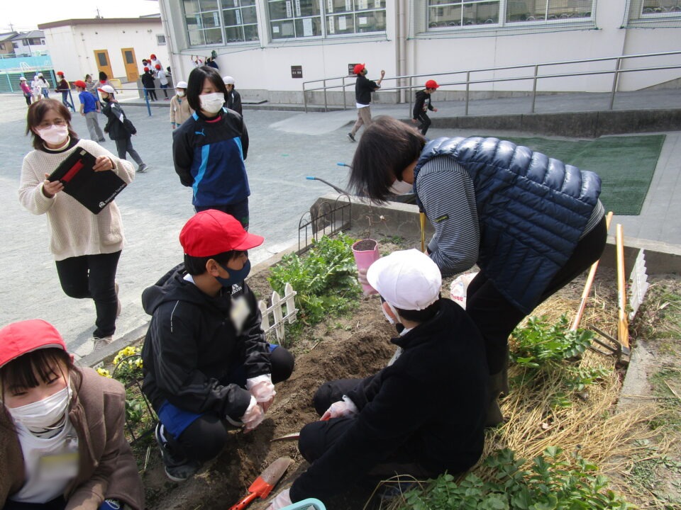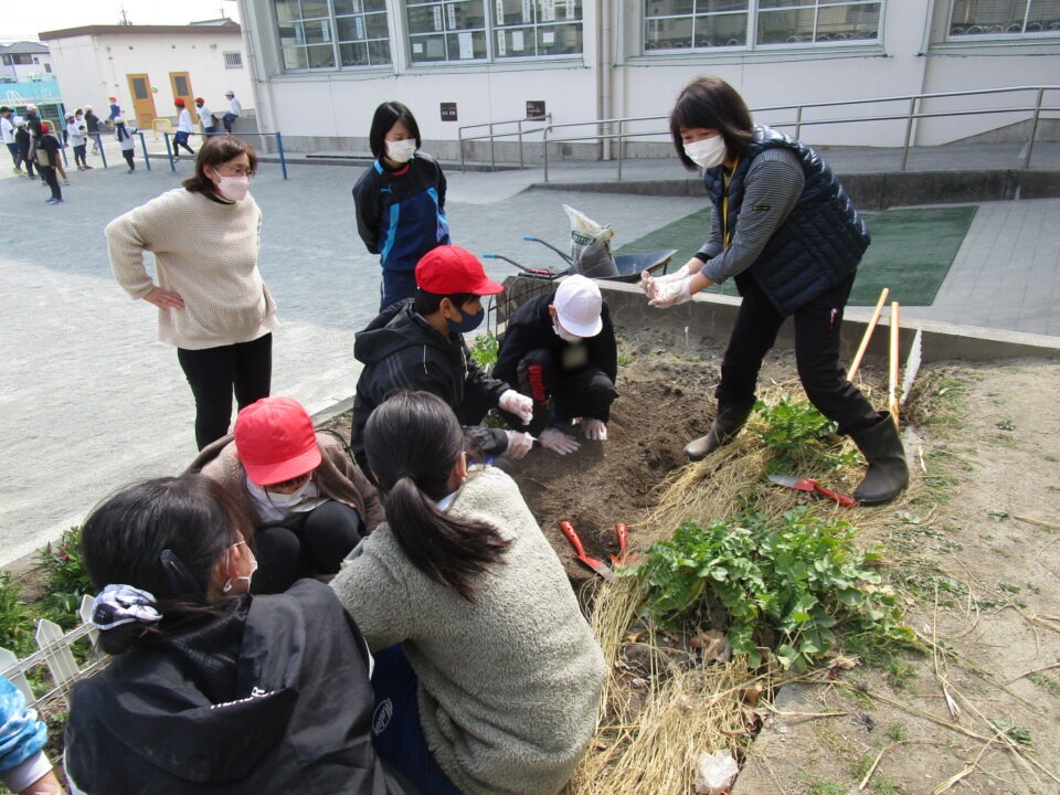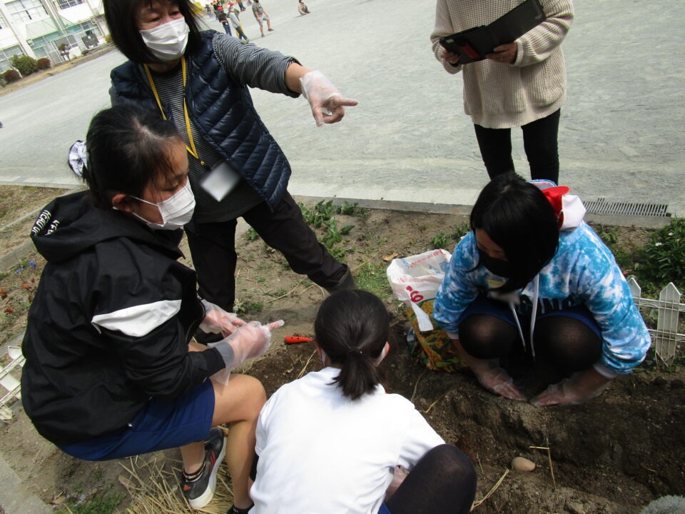 さっそく植え始めました。よく話を聞いていて、やる気満々の子たちです。