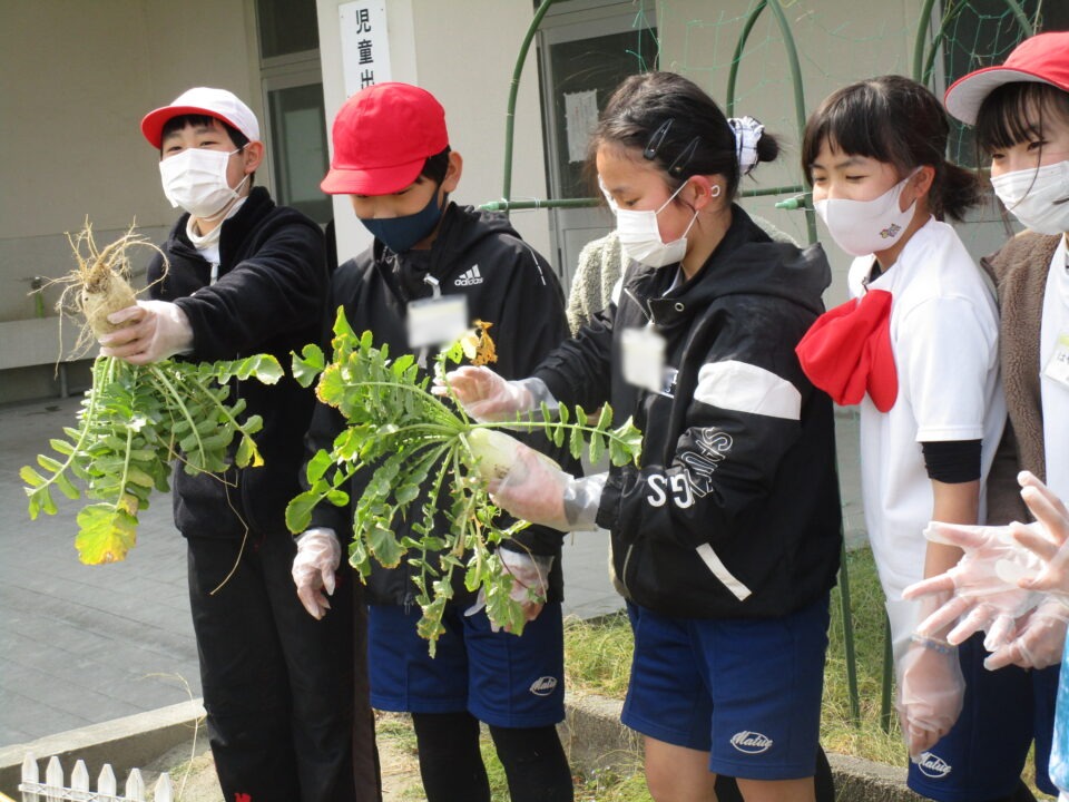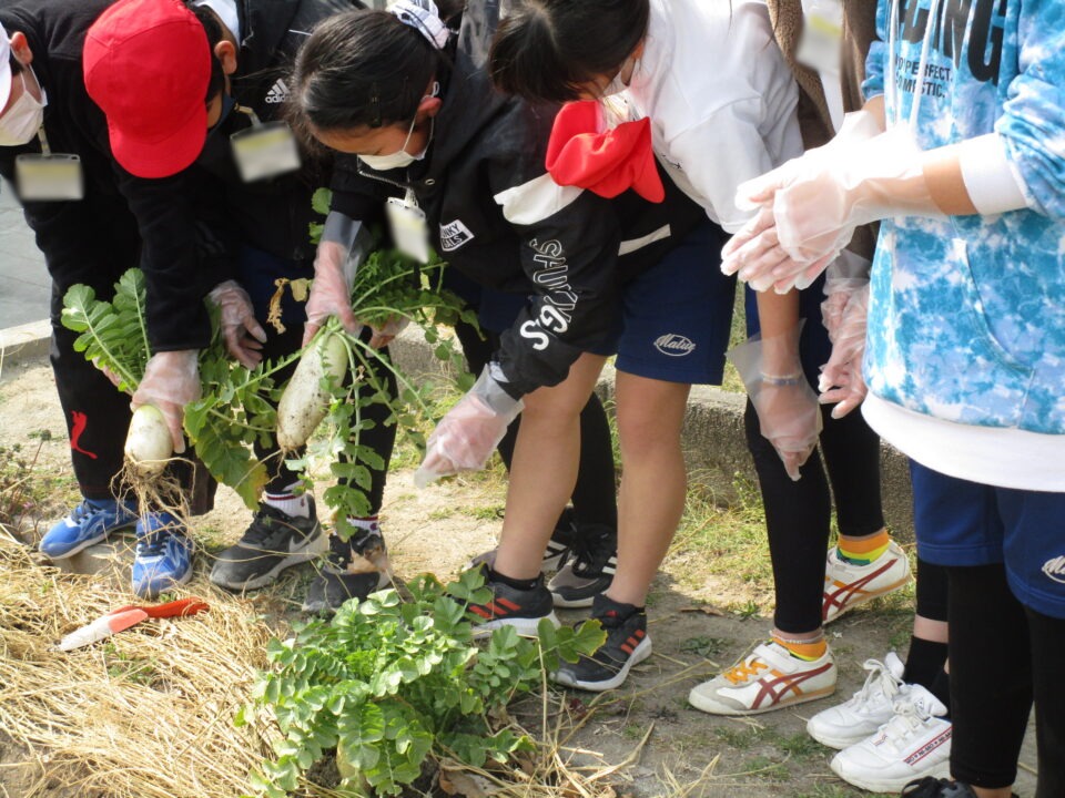 終わりに、大根を抜かせてもらいました。2組へお土産です。