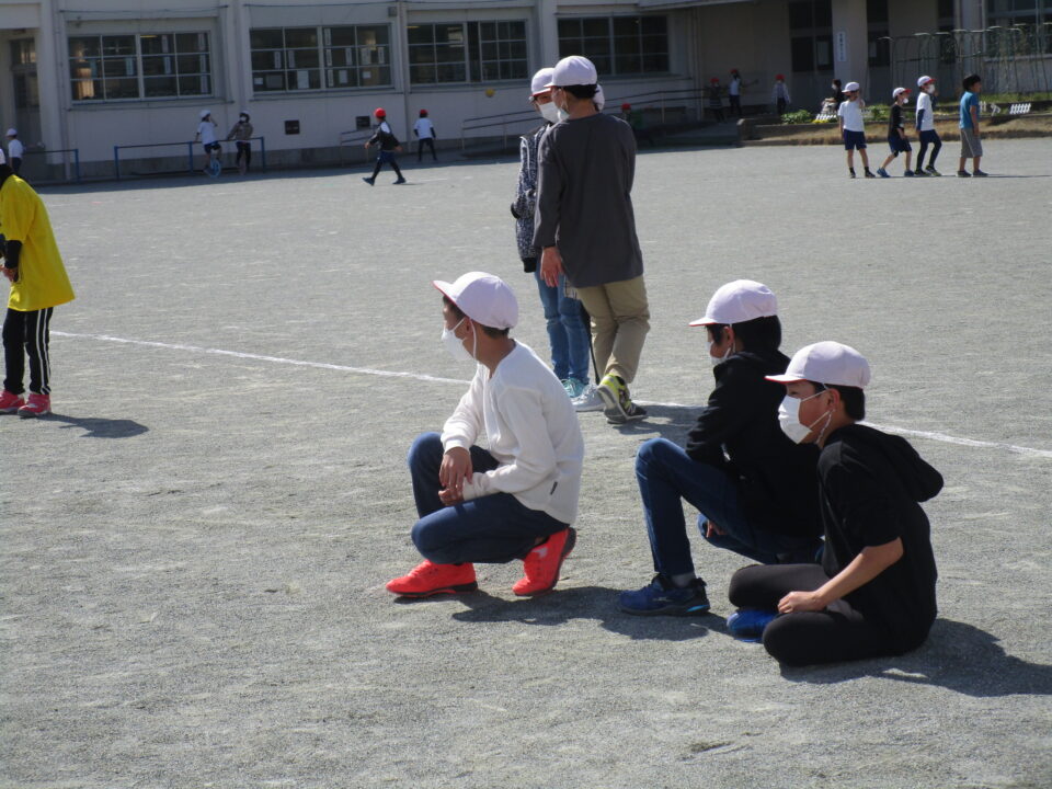 先生せんせい全力ぜんりょくはしって、あせだくです。