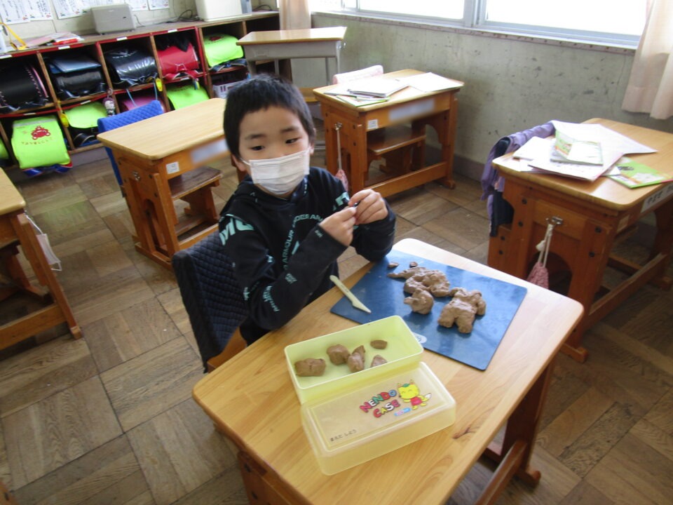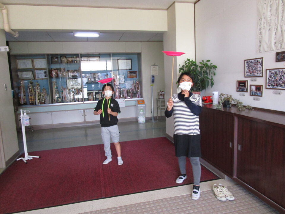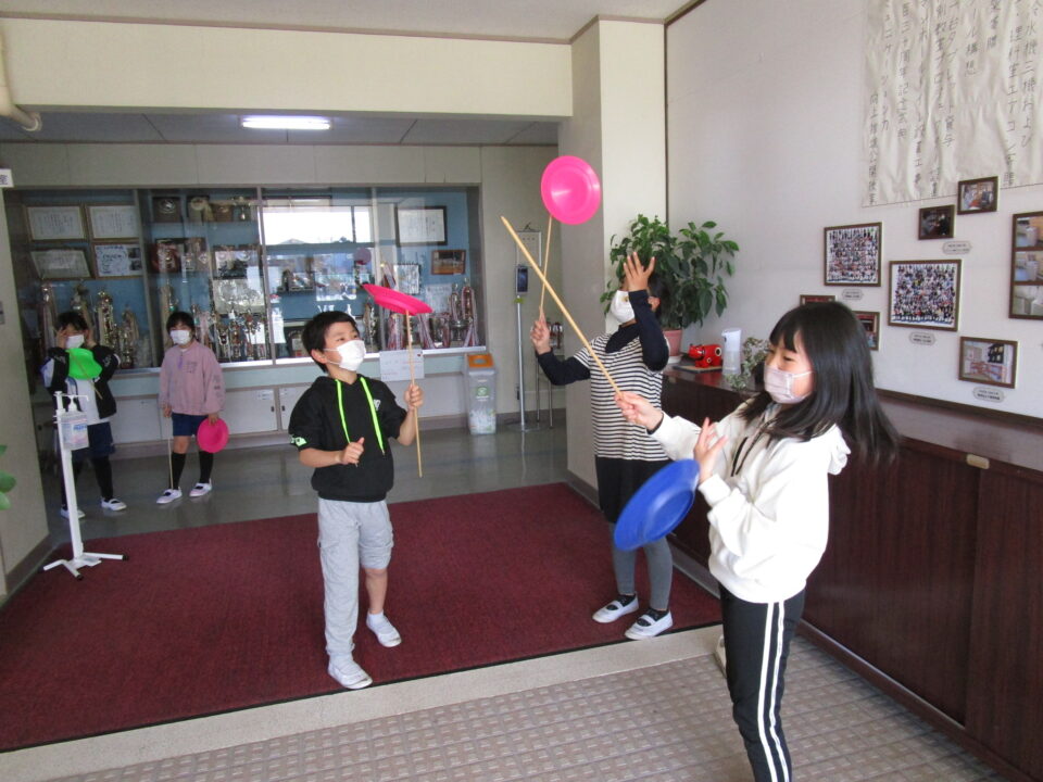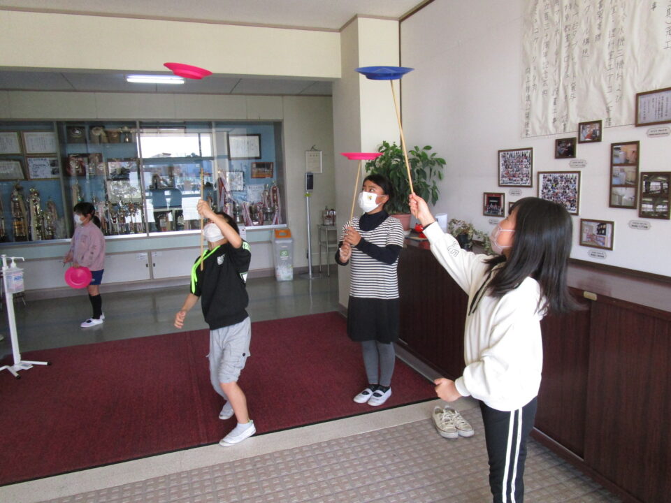 校舎こうしゃはいると、皿回さらまわしや教室きょうしつ粘土遊ねんどあそびをして、たのしくごしているもいましたね。
