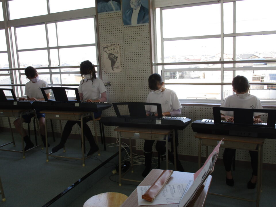 音楽室では、4-2が合奏の練習をしていました。最後に担任の先生にも聞いてもらうようです。