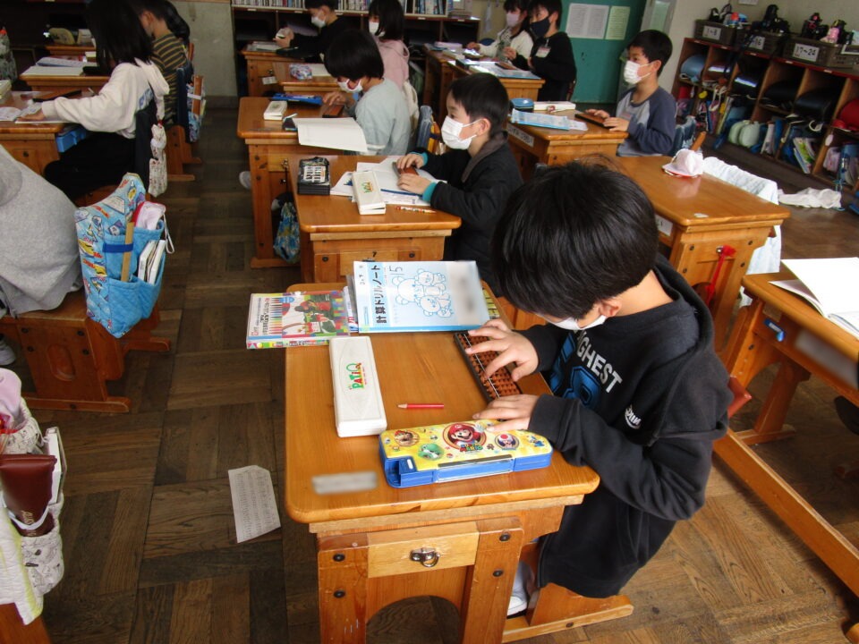 隣のクラスでは、そろばんを練習していました。