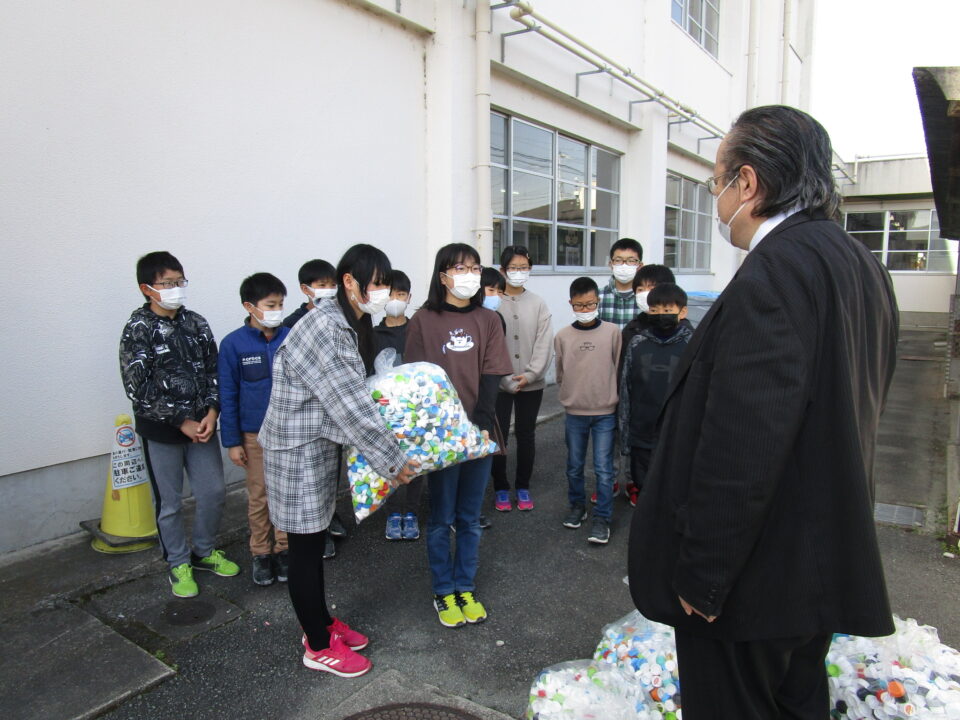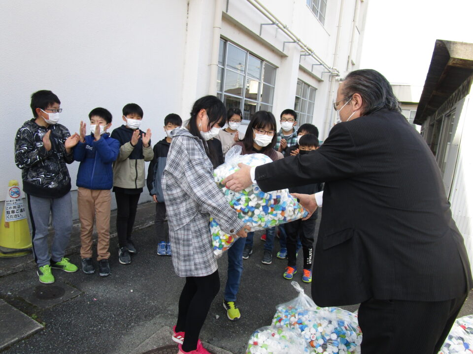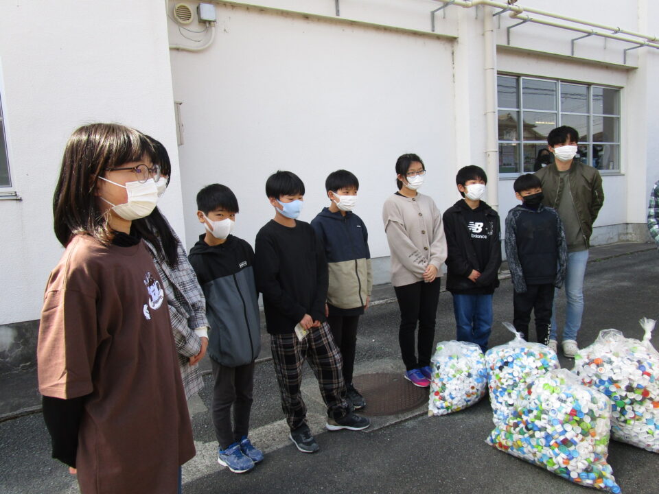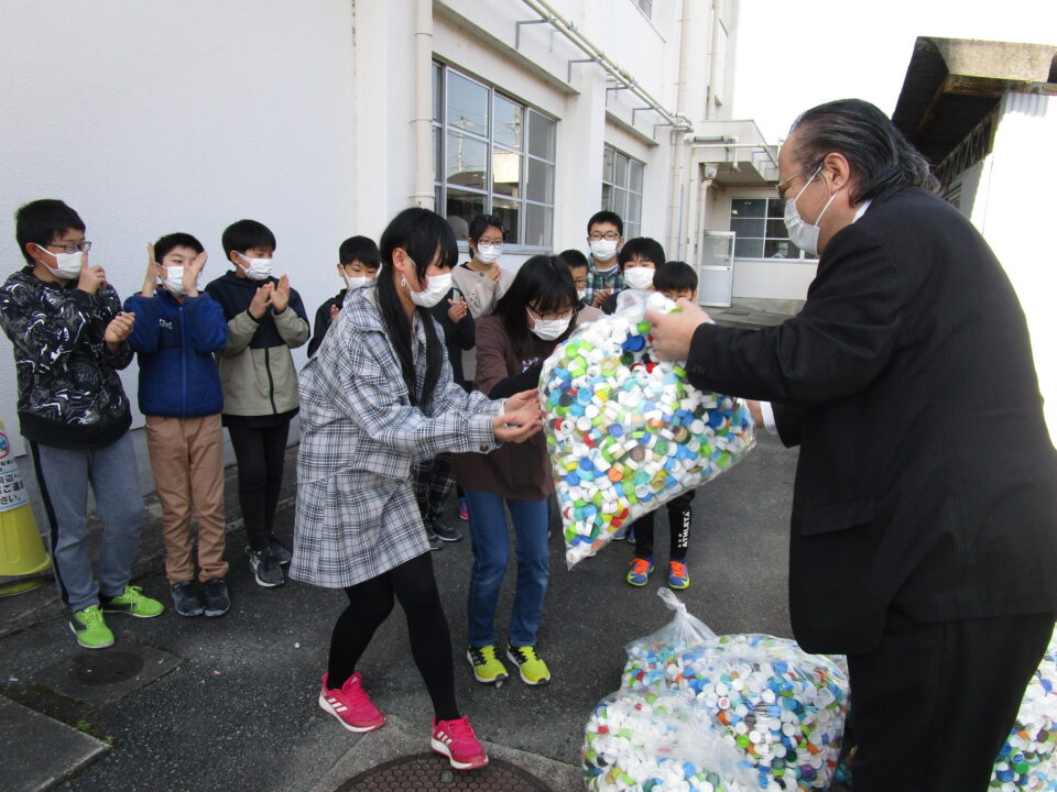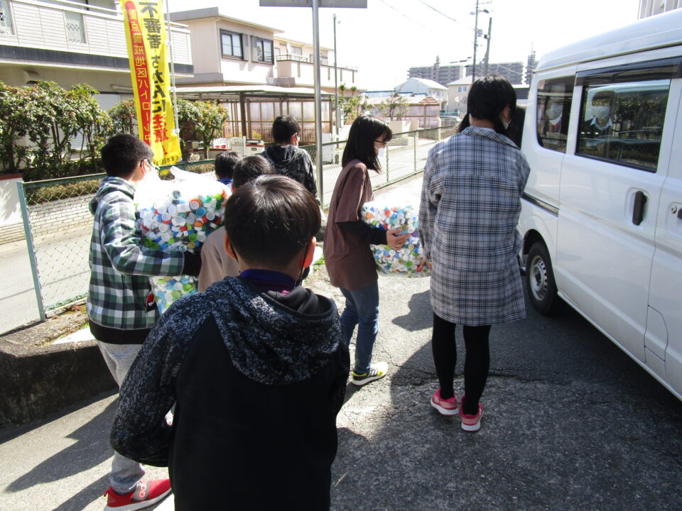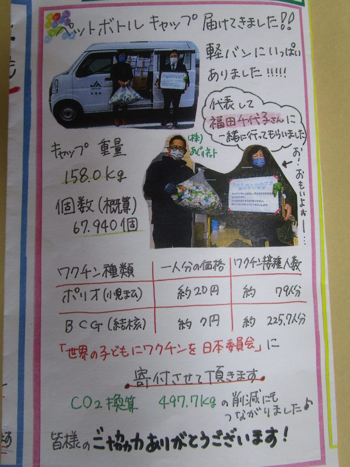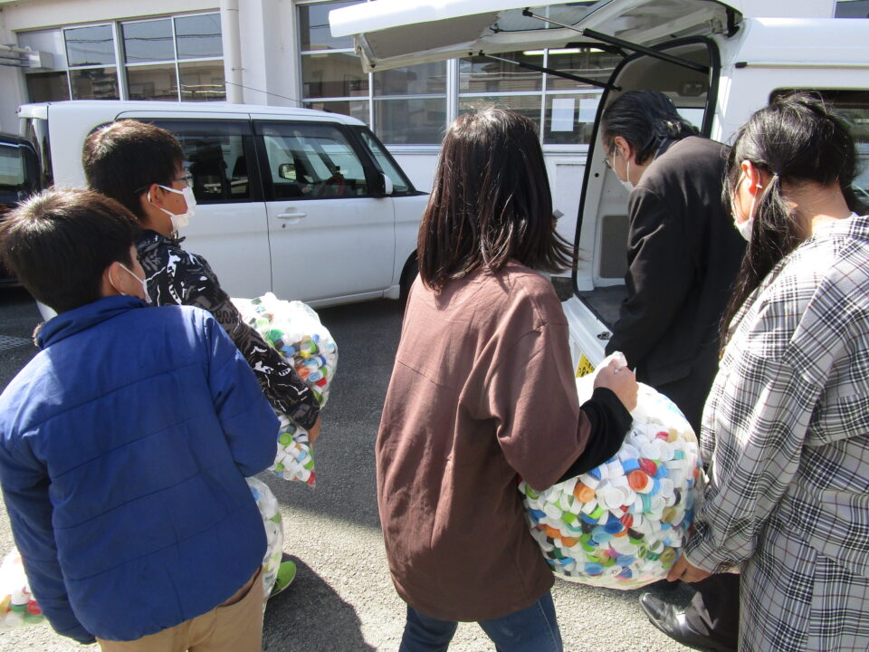 本校では、ペットボトルキャップを集めて3年目となります。