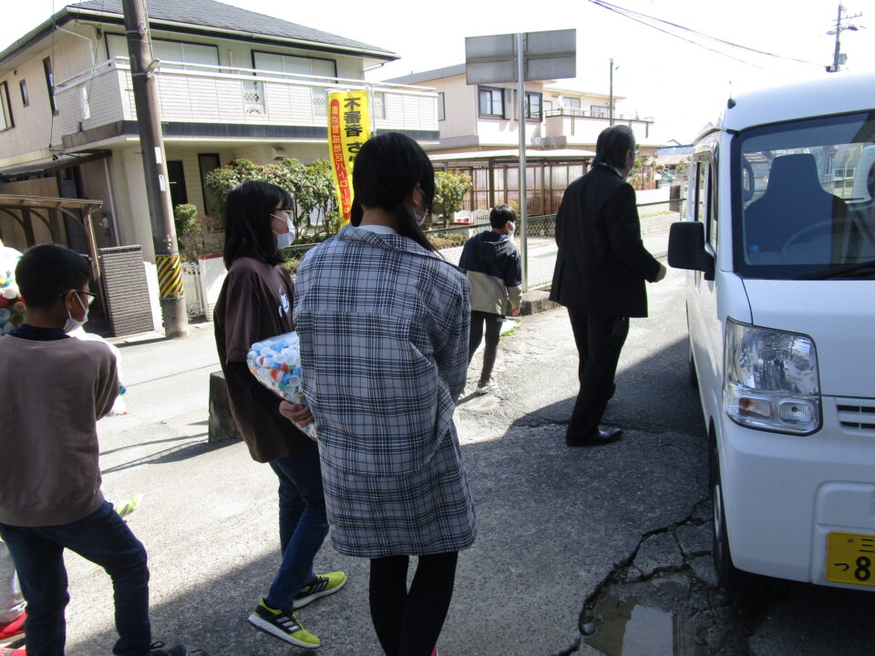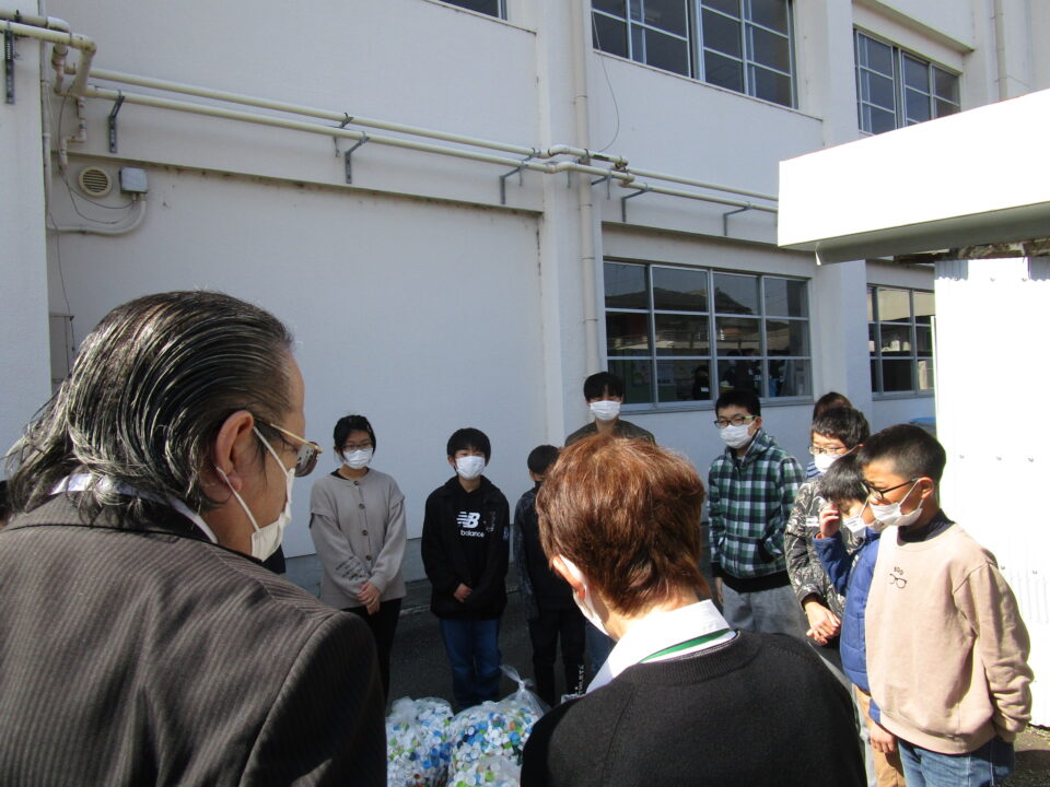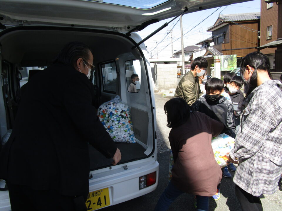 今日は、1年間ためてきたペットボトルキャップを「JAみえなか大足支店」さんに来ていただき、使っていただくようにお願いしました。