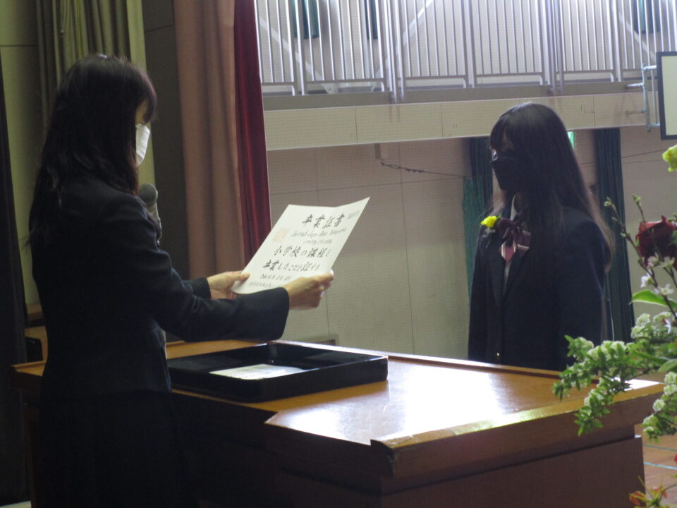 18日の卒業式にTeamsでは参加しましたが、直接式場には出られなかった子の卒業式を行いました。