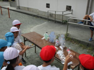 ホーム > 日々の活動の様子 水鉄砲であそぼう(1年生と松江幼との交流) 1年生と松江幼稚園園児との交流です。 松江幼の子たちに楽しんでもらおうと、みんなで意見を出し合いながら、どんなことをするか一生懸命考えました。 暖かい日差しの中、水鉄砲で楽しく遊ぶことができました。 シェアする Twitter でシェア はてなブックマークに保存 LINE でシェア Facebook でシェア Pocket に保存 Feedly で購読 関連投稿 2024年度 / 日々の活動の様子 校外学習(こうがいがくしゅう) ~6年生(ねんせい)~ 2024年度 / 日々の活動の様子 卒業式前日準備(そつぎょうしきぜんじつじゅんび) 日々の活動の様子 / 2023年度 フッ化物洗口(かぶつせんこう)を再開(さいかい)しました 日々の活動の様子 / 2021年度 学習(がくしゅう)の様子(ようす)3/23 日々の活動の様子 / 2020年度 校内教室表示(こうないきょうしつひょうじ)英語版(えいごばん) 日々の活動の様子 / 2022年度 学習(がくしゅう)の様子(ようす) ~5年生(ねんせい)~ 前の投稿 とまとーずの交通安全教室 次の投稿 学校運営協議会