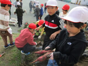 ホーム > 日々の活動の様子 芋ほり(1年生) 1年生が大切に育てたサツマイモの収穫です。 たくさんのサツマイモを掘ることができました。 この後、このサツマイモをつかって、どんなことをするか楽しみですね。 シェアする Twitter でシェア はてなブックマークに保存 LINE でシェア Facebook でシェア Pocket に保存 Feedly で購読 関連投稿 日々の活動の様子 / 2020年度 1.2年生教室(ねんせいきょうしつ) 日々の活動の様子 / 2023年度 新年度(しんねんど)が始(はじ)まります 2025年度 / 日々の活動の様子 「湖」の書写 日々の活動の様子 / 2020年度 作品(さくひん)づくり 日々の活動の様子 / 2019年度 2年生(ねんせい)まちたんけん 日々の活動の様子 / 2023年度 学習(がくしゅう)の様子(ようす) ~6年生(ねんせい)~ 前の投稿 文化祭 しょんがい音頭