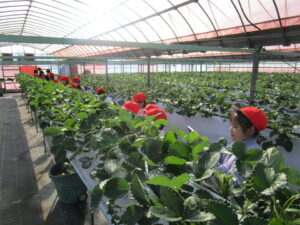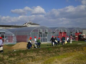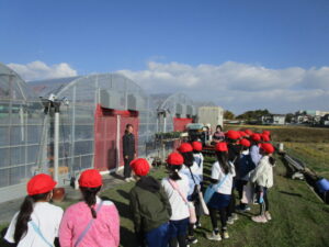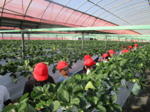 その知らせを受けた3年生、さっそくイチゴ農家さんへ伺い、イチゴの観察をさせていただきました。