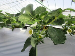9月末に植えたイチゴの苗がずいぶん大きくなり、花を咲かせるようになったようです。
