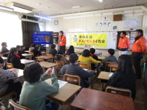 SNS等をつかった身近なコンテンツから薬物使用の低年齢化が大きな問題となっています。違法薬物や危険ドラッグの恐ろしさ、最初に使用するにいたった手口等、わかりやすく話していただきました。