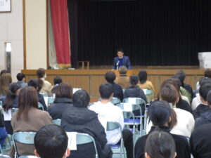 西中学校の先生をおむかえして、6年生の親子を対象に西中学校入学説明会がおこなわれました。