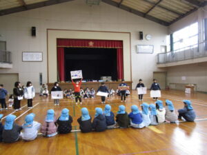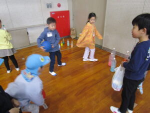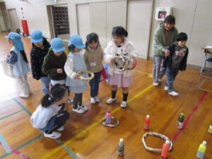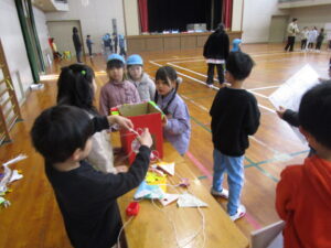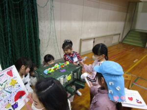 今日は、松江幼稚園の子どもたち(年長さん)に楽しんでもらおうと、わくわくフェスティバルをおこないました。