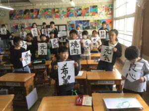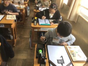 ホーム > 2025年度 / 日々の活動の様子 自由習字 4年生の書写。 最後の課題を全員クリアしたので、今日はいろんな文字や絵を書いて楽しむ自由習字でした。 楽しんで思い思いの字や絵を書いて最後は撮影。 「楽しかった~♪」の言葉が飛び交いました。 シェアする Twitter でシェア はてなブックマークに保存 LINE でシェア Facebook でシェア Pocket に保存 Feedly で購読 関連投稿 日々の活動の様子 / 2020年度 最後(さいご)の委員会(いいんかい) 日々の活動の様子 / 2021年度 ベスパ水泳教室(すいえいきょうしつ) 1年生(ねんせい) 日々の活動の様子 / 2022年度 文化祭(ぶんかさい)・学習発表会(がくしゅうはっぴょうかい) 〜5年生(ねんせい)〜 日々の活動の様子 / 2023年度 プール掃除(そうじ)をしました。 日々の活動の様子 / 2022年度 後期認証式(こうきにんしょうしき) 日々の活動の様子 / 2021年度 修了式(しゅうりょうしき)をしました。 前の投稿 ワックスがけ(6年生奉仕作業)