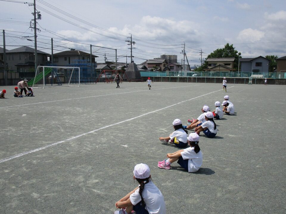 今日は、1年生が体育をしました。体育の授業では、マスクをつける必要はないとしています。