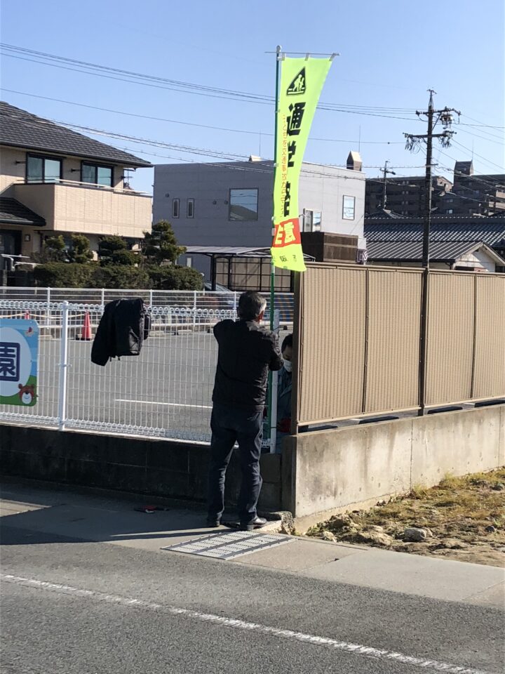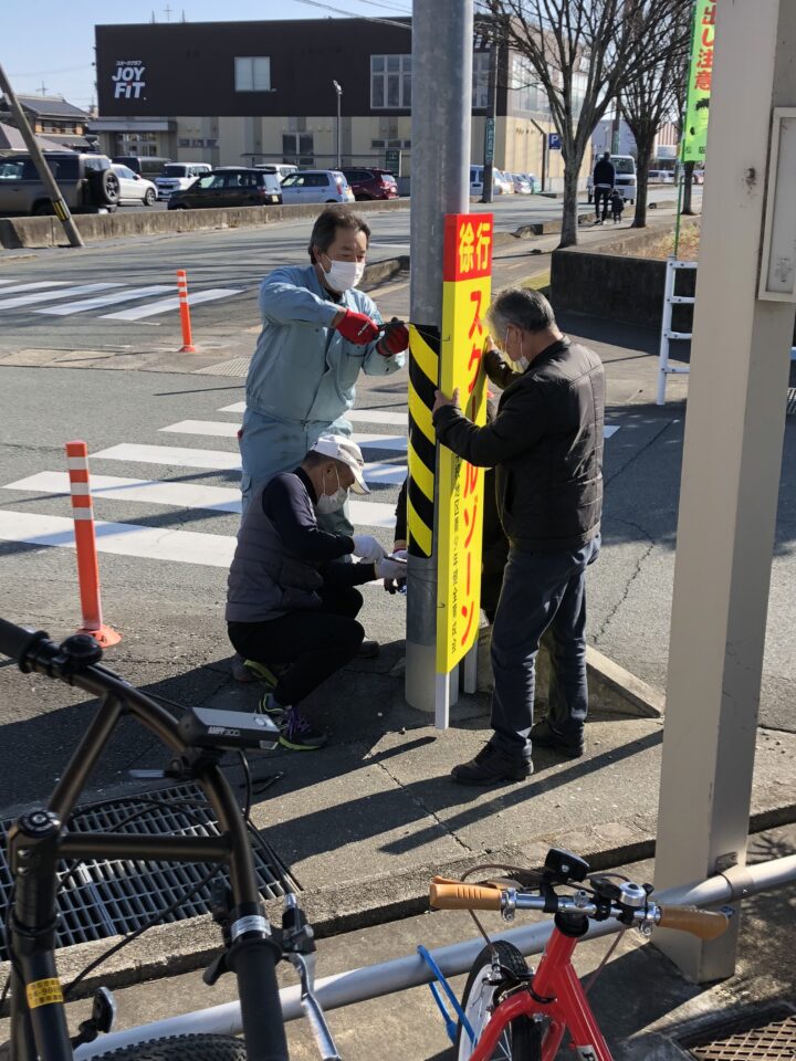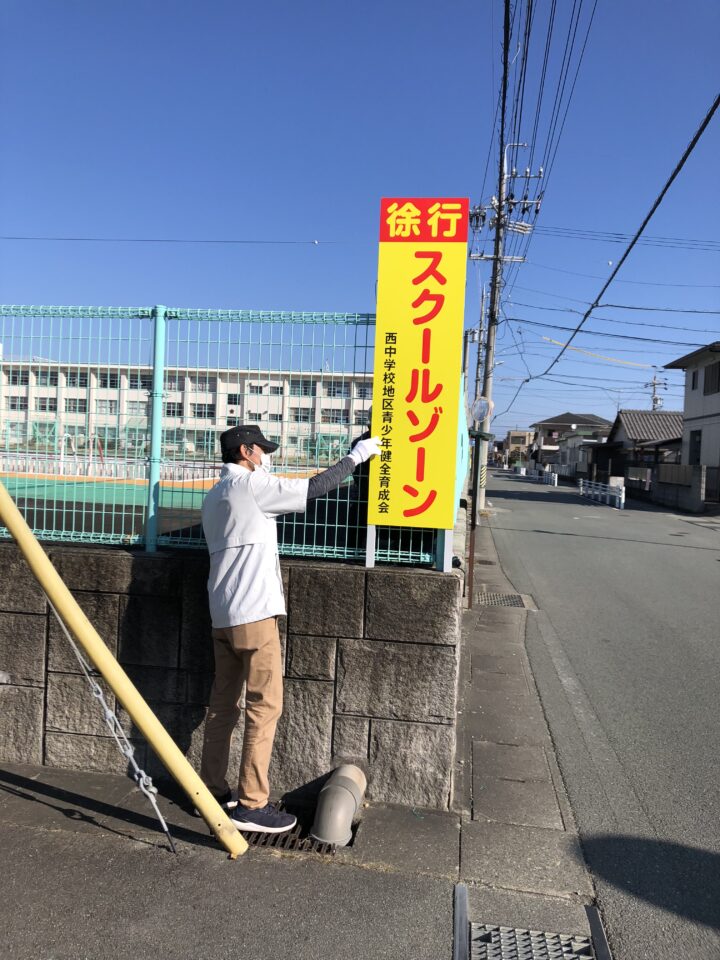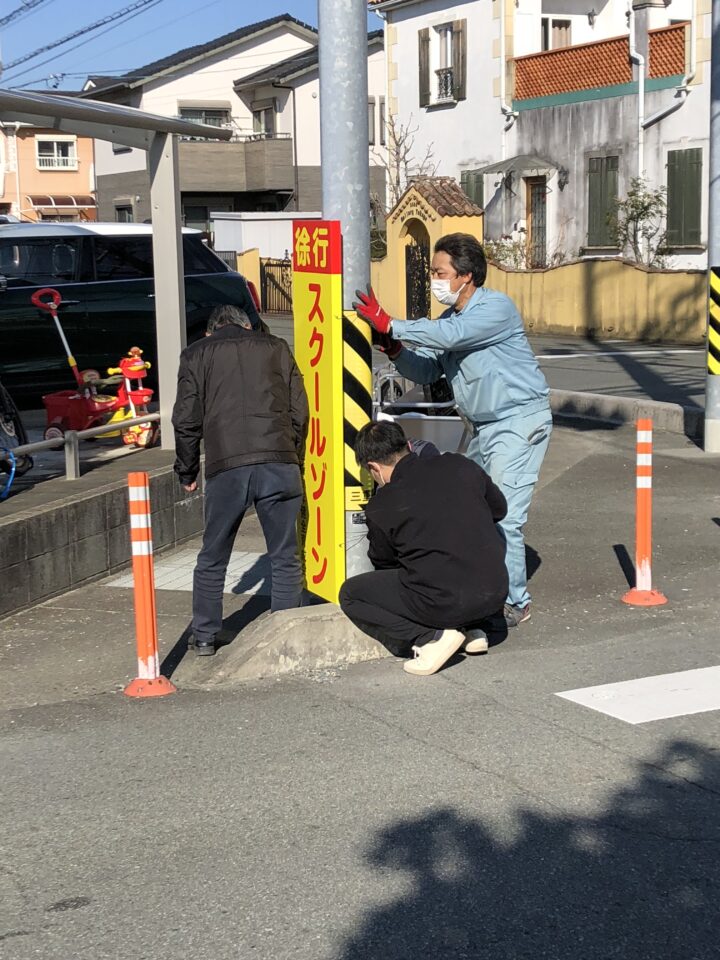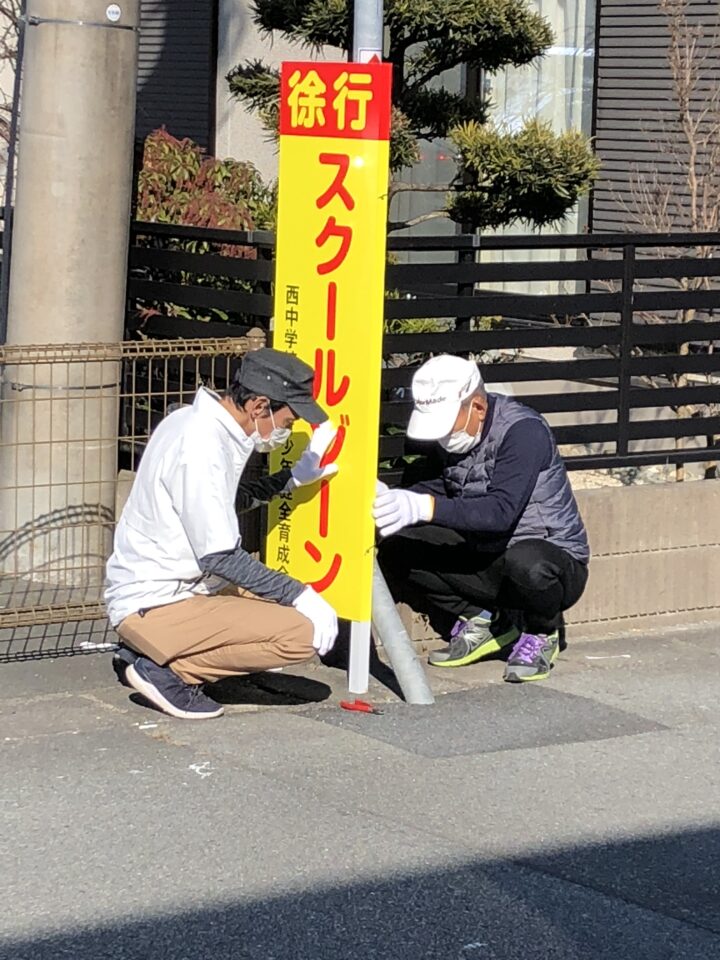 1月10日(月)10時から、川井町西自治会さんとPTA役員さんと学校で、8枚の「スクールゾーン」看板を学校周辺7か所に設置しました。